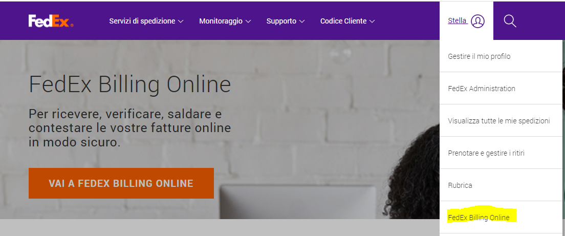 Accedendo al portale www.fedex.it e indirizzandovi nella sezione FedEx Billing Online andare su